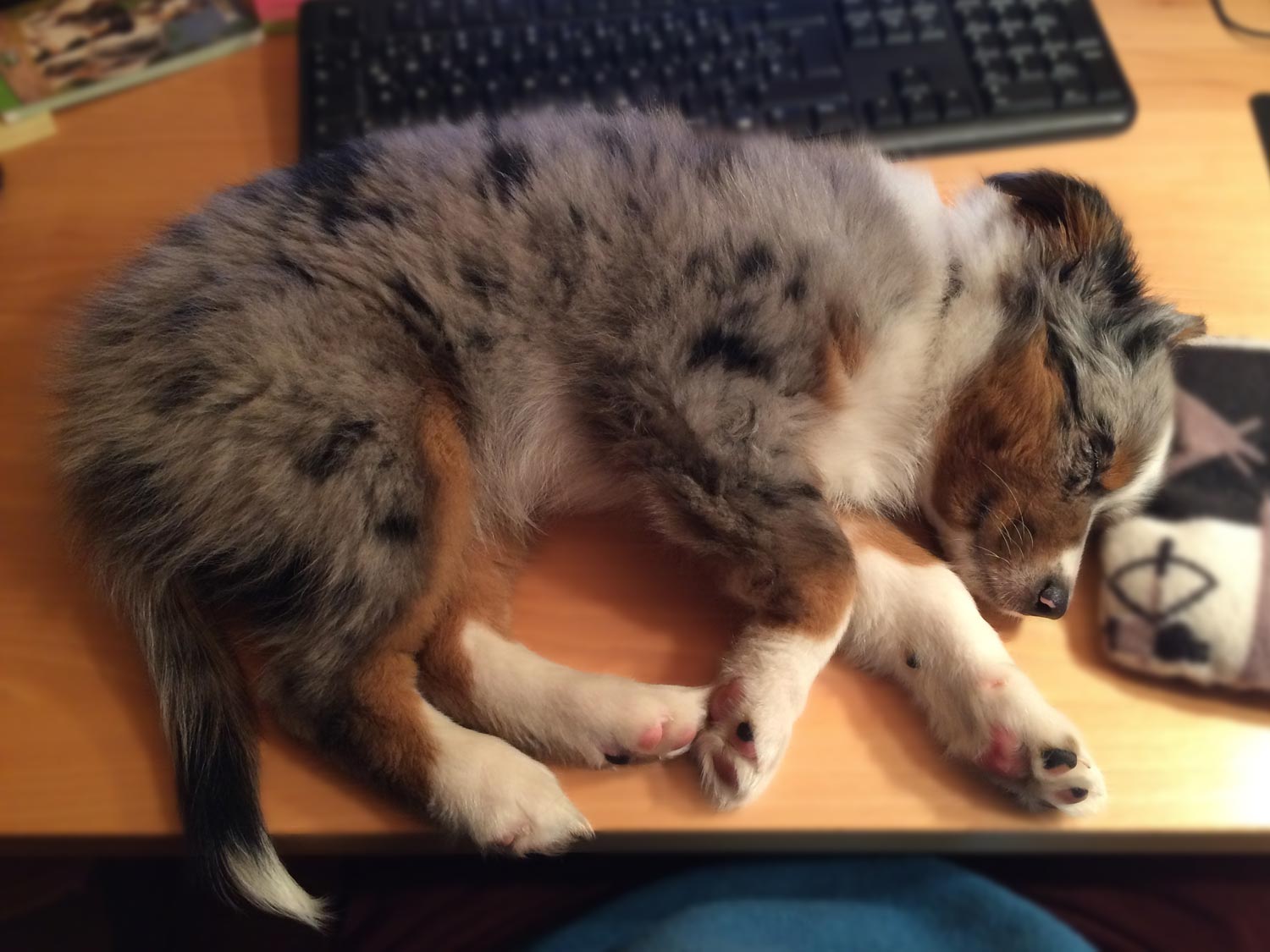 Genauso wie Herrchen und Frauchen liebt er den Agility-Sport und ist dafür am Wochenende so oft es geht auf Tour. Die Energie holt er sich dafür auch gern mal auf dem Schreibtisch - eine tolle Handballenauflage, aber mit großer Ablenkungsgefahr bei der Arbeit!