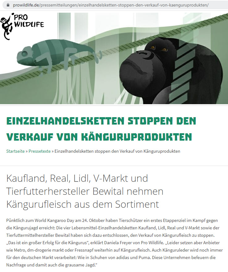 Weitere Informationen zum Tierschutz bezüglich Kängurus und unserer Stellungnahme können Sie der Pressemitteilung der Tierschutzorganisation Pro Wildlife entnehmen:
